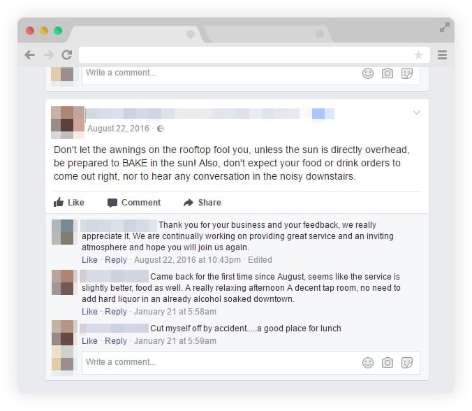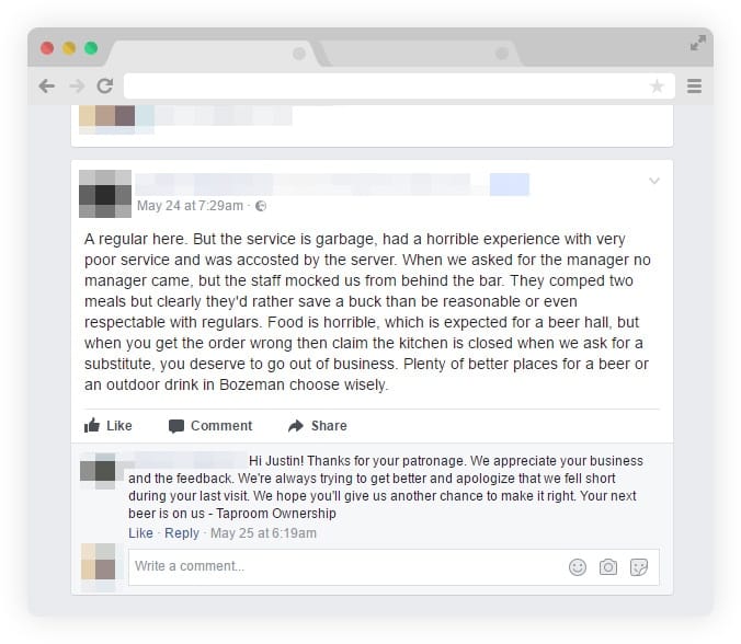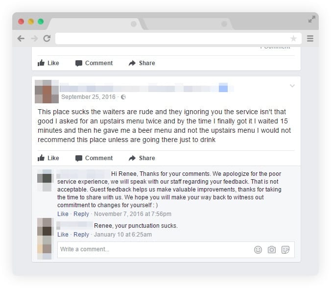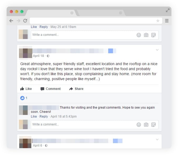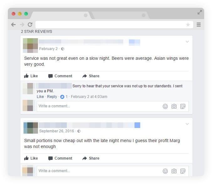 If a disgruntled customer comes to your page and sees only negative reviews, it’s further proof that the customer is right and that other people didn’t like the place, either.
