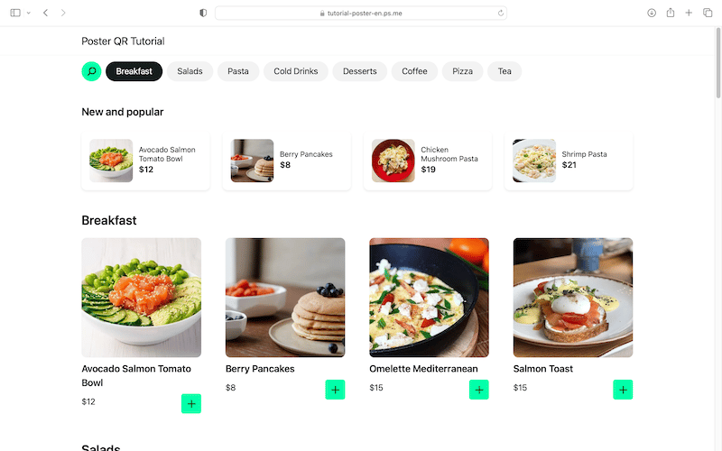 In conclusion, Poster QR is a powerful tool for building restaurant websites. User-friendly interface, customization, and menu management features, along with SEO optimization, are making it a neat service for your restaurant’s online presence. With Poster QR, you can create a comprehensive website that showcases your restaurant, accepts orders and engages customers.