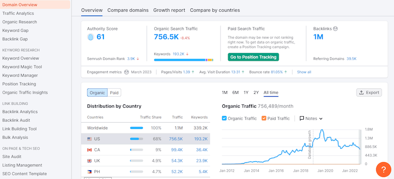- Backlinks. As we have mentioned above, backlinks are highly valued by Google. According to SemRush research, the number of backlinks that lead to pages on the first position is 2.2 times bigger than the number of backlinks that lead to pages on the second. If the number of backlinks doesn’t increase, you should consider improving your link building strategy and the quality of your content to attract more resources to link to you.