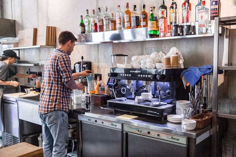 Pro tip: start designing your coffee shop interior around your kitchen and equipment. This way, you won’t have to cut down on equipment or make your employees jammed in a lumbered space.