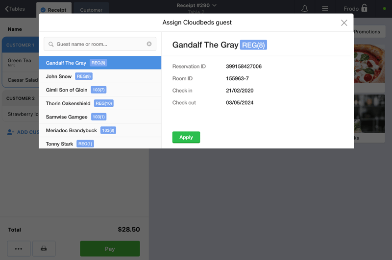 Poster POS integrates with Cloudbeds properties, sending POS orders directly to your PMS system and allocating them to specific rooms in your hotel.