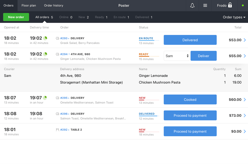 You always see the current status of each order. Poster will remind you when to start preparing an order or when to hand it over to a courier for delivery.
