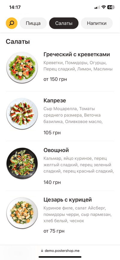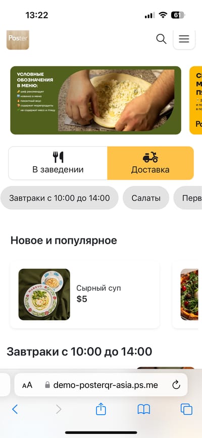 - Автоматическое создание меню из ваших блюд в Poster-POS