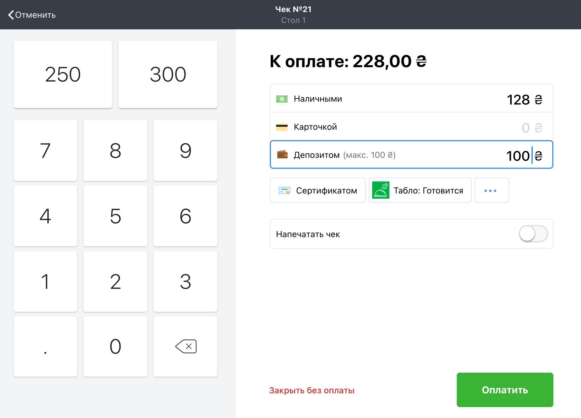 Депозитное бронирование столов в системе учета ресторана или кафе