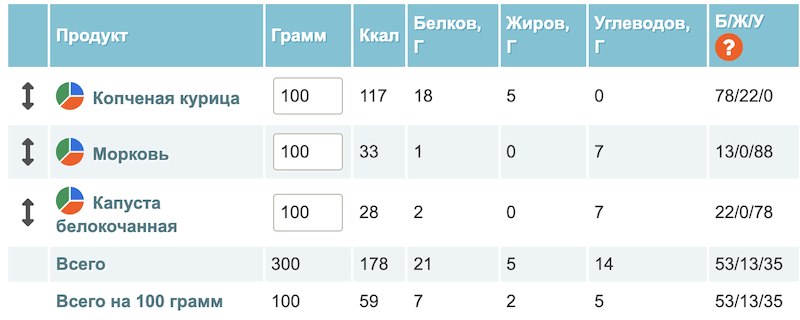 «Все готовят тот же “Цезарь” по-разному. То есть “Цезарь” у вас дома и “Цезарь” в ресторане имеют разные показатели жиров, белков и углеводов. А в Калоризаторе ты выбираешь количество грамм ингредиентов и по итогу калькулятор считает, сколько в нем белков, жиров и углеводов», — говорит диетолог.