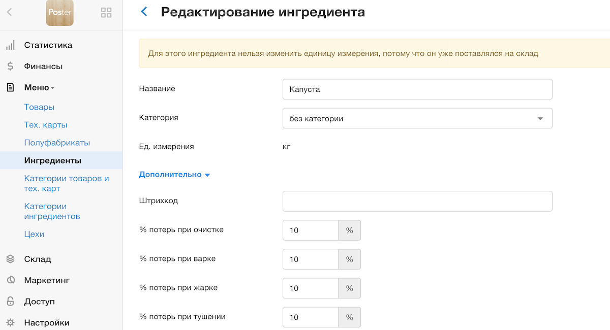 Как вести учет расхода ингредиентов в системе учета Poster