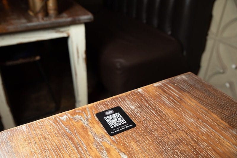 Разместите наклейки на видных местах для гостей. Добавьте их на каждый столик в зале, на кассу и на стойку бара. Так посетители смогут отсканировать код в любом удобном месте.