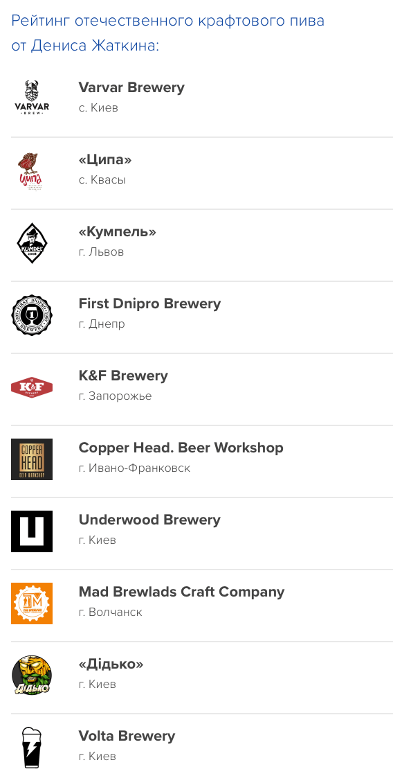 Этот топ-10 я составил, опираясь на личный опыт. В десятку попали пивоварни, которые имеют постоянные сорта, стабильное качество и свои удачные варианты пива в определенных стилях. Хотя много компаний могут вскоре и потеснить эту десятку.