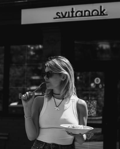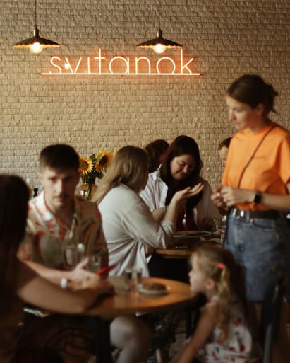 В кафе SVITANOK всего 26 посадочных мест - то есть мы маленькое заведение «на районе» в Киеве. Когда мы с партнером придумывали концепцию, то хотели, чтобы гости шли к нам за кофе, завтраками и вином. Но наш факап был в названии и лого (хотя мы их обожаем): слово «Рассвет» люди ассоциируют с утром, завтраком, кофе и точно не с вином. Что касается лого, то на нем есть линия горизонта и буквы, которые встают (рассвет) и садятся (закат). Однако его тоже восприняли только как историю об утре.
