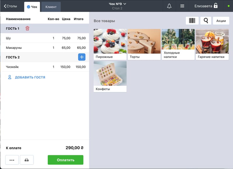 - Облачная касса на планшете или телефоне для быстрого управления заказами