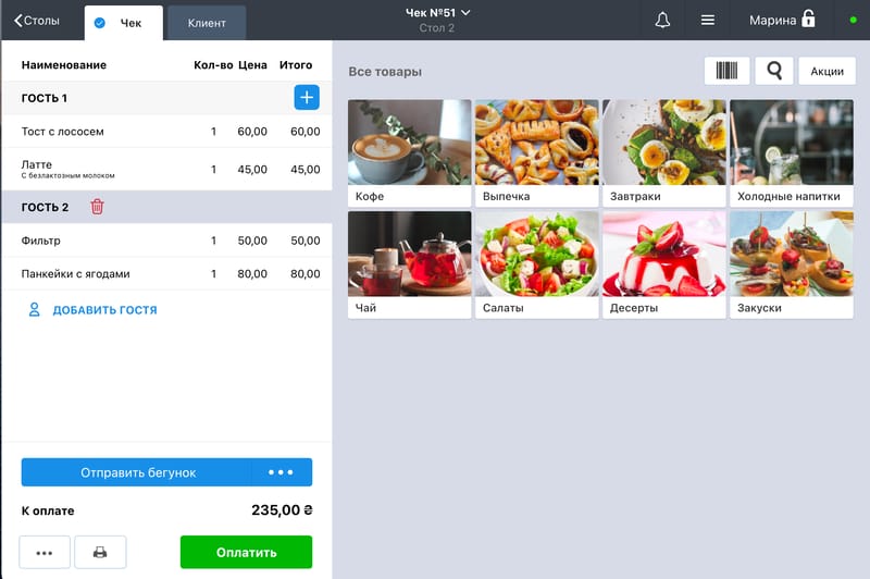 Удобная касса для кофейни
