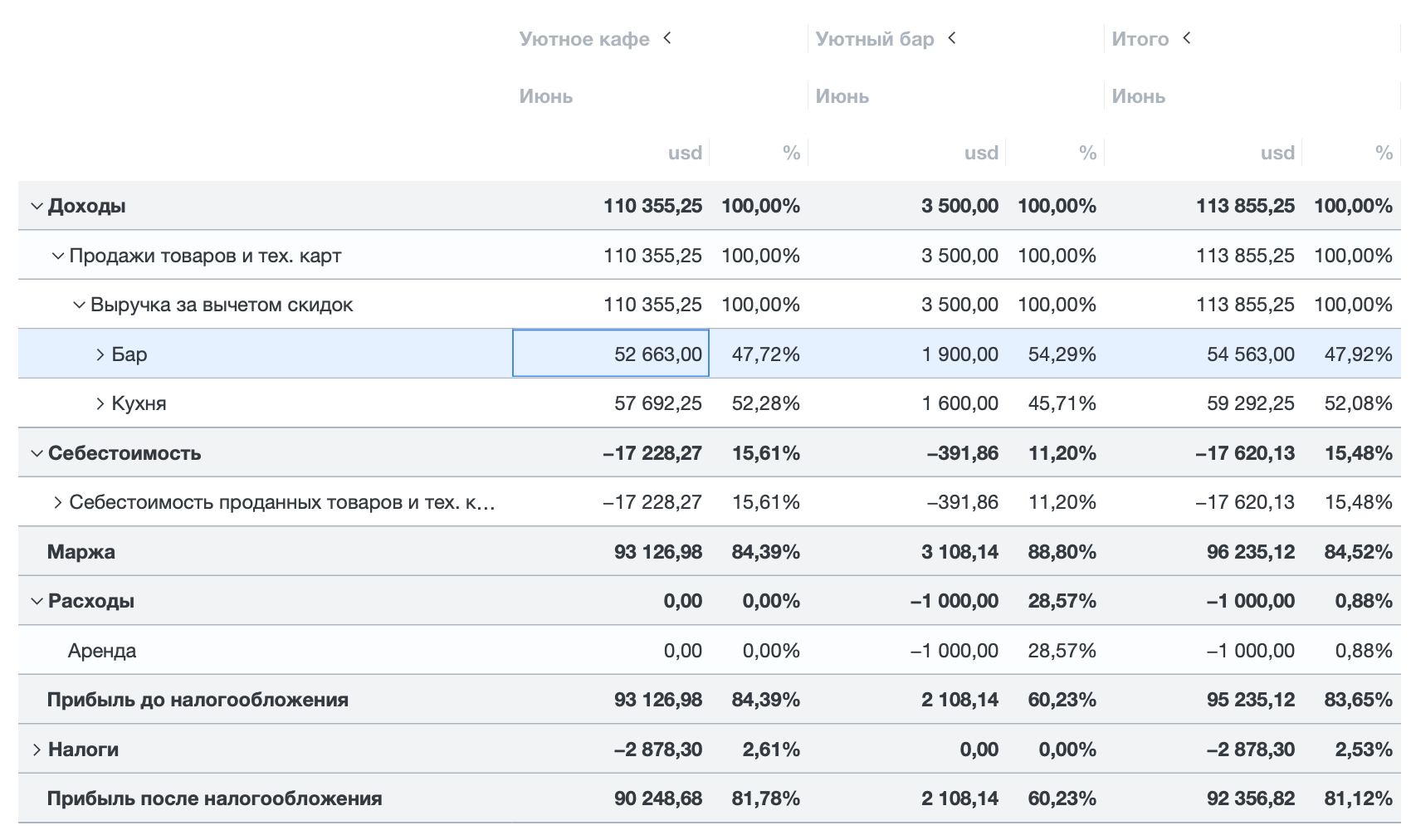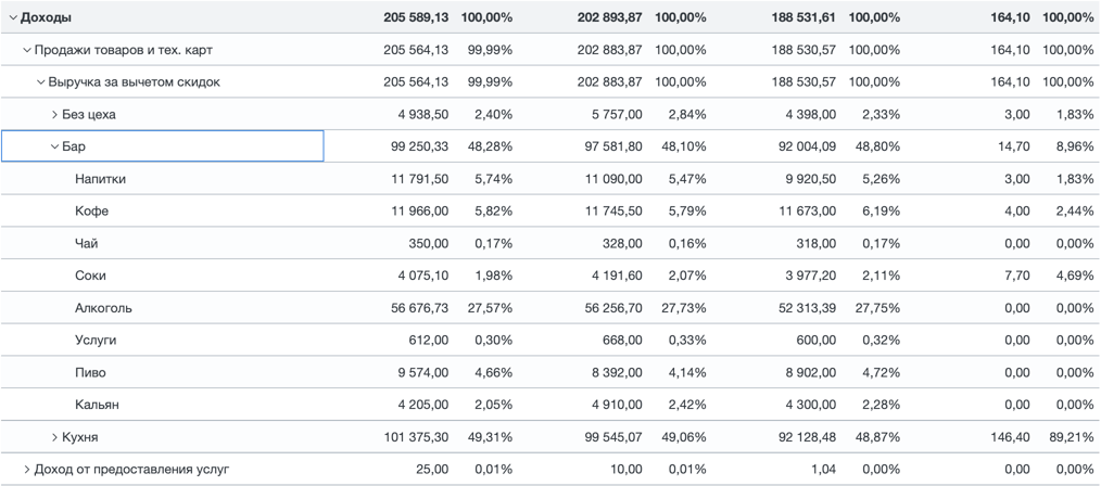 - Что приносит больше прибыли: бар или кухня?