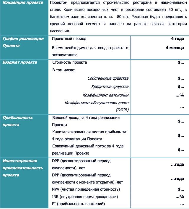 Розглянемо кожен пункт проекту бізнес-плану ресторану.