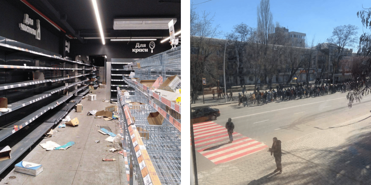 Трохи пізніше почалась проблема з мародерством. Наше місто, на жаль, у цьому плані відзначилося: в нас дійсно через мародерство пізніше виникла гуманітарна катастрофа. Мешканці вибивали вікна в АТБ та Сільпо, виносили праски, тарілки, ложки, губки, порошки – все, що було. Практично всі магазини були розграбовані.