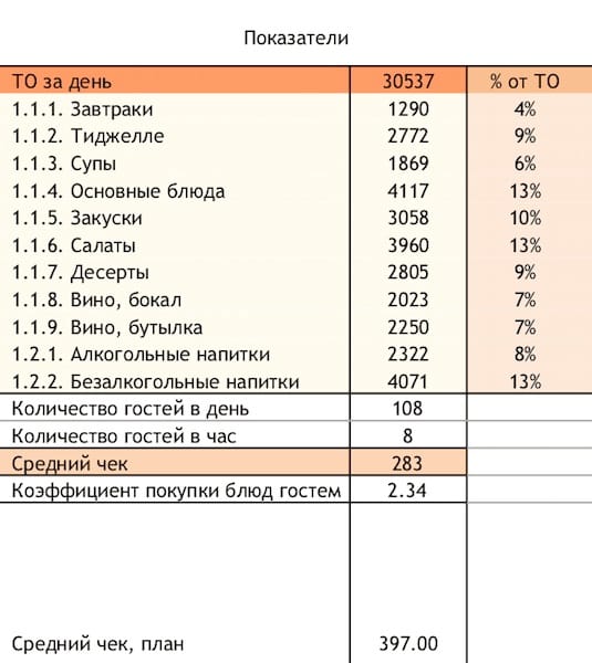 Найліпше складати подібні розрахунки в окремій таблиці. Як показує практика ресторанного консалтингу, гіпотези спрацьовують на 80%. Звісно, за умови, що всі вирішення та стратегії було справді впроваджено й утілено.