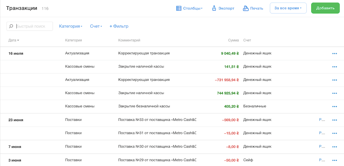 Фінансовий звіт — контролюйте всі транзакції, які виконуються у вашому закладі, стежте за витратами, які створюють офіціанти на терміналі продажу. Так ви бачитимете фінансовий результат роботи закладу.