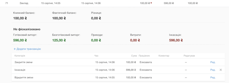 Касові зміни допомагають контролювати всі витрати та внесення, які створюють працівники на касі. Ця функція допоможе слідкувати за роботою касирів, сумами готівкового та безготівкового виторгу за день з адмін-панелі або з власного телефону.