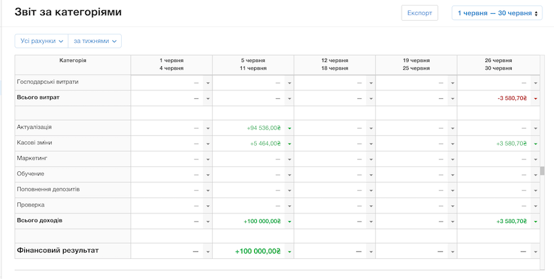 Детальний огляд транзакцій у звіті дозволяє виявити слабкі місця в управлінні фінансами, визначити найбільш прибуткові напрямки бізнесу та зменшити ризики фінансових втрат.