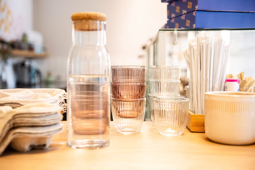 Інвентар для кав’ярні формату «to go» потрібен тільки в робочу зону: ложки, кувшини, тарілки, ножі. Для гостей потрібно буде закупитись одноразовим посудом: стаканчики, кришки, мішалки і тримач для гарячих напоїв.