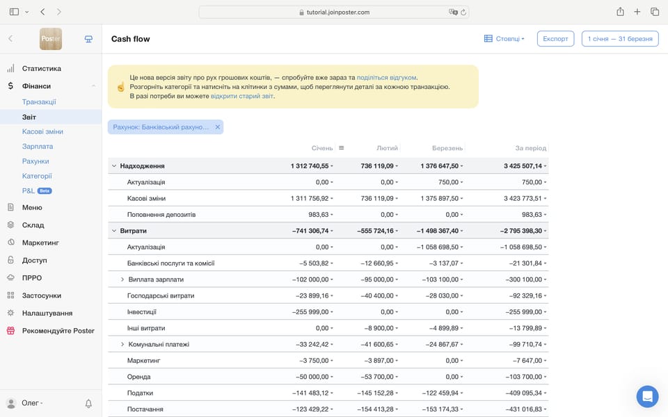Фінансовий облік у кав’ярні має бути, створюйте всі транзакції у системі автоматизації, щоб наприкінці дня чи місяця побачити фінансовий результат роботи кав’ярні.