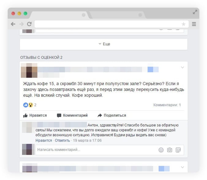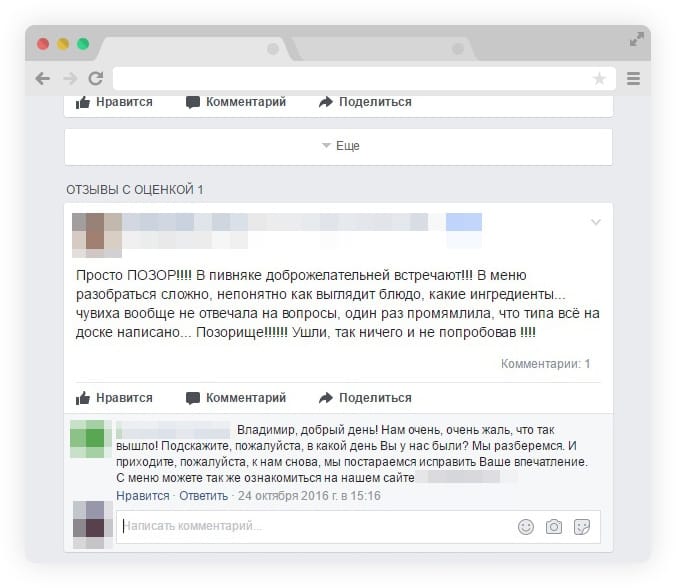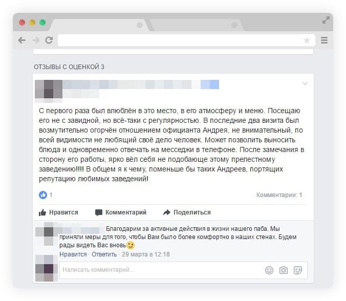 Навіть у найуспішніших закладів є негативні відгуки. Якщо гостю щось не сподобається, він майже зі стовідсотковою ймовірністю напише про це у вашій групі у фейсбуці чи залишить дошкульний коментар в інстаграмі. А ось позитивні відгуки залишають одиниці, адже якщо все добре, то що писати? У цьому й проблема.