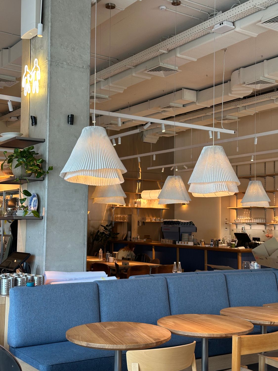 Над освітленням працювали разом із Денисом Зазубеком , співвласником «Кафе Матьє» та дизайнерського бюро Rizdvo. Світло тут сценарне: зранку воно підтримує ритм пекарні й сніданкового сервісу, а ввечері трансформує простір у більш камерний, майже ресторанний формат.