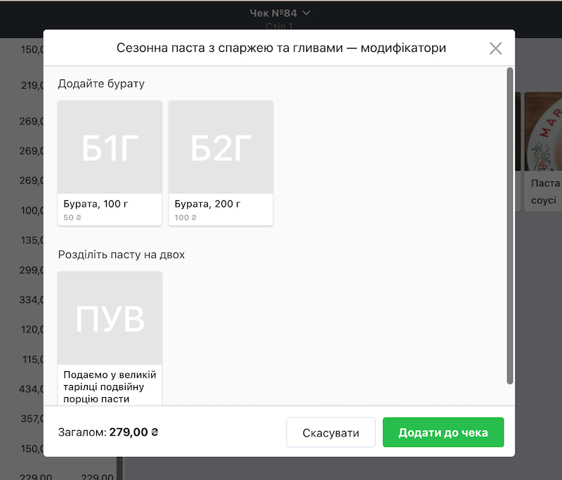 Якщо у закладі ви продаєте позиції з різними варіантами соусів або інших добавок до них, використайте тех. картки з модифікаторами.
