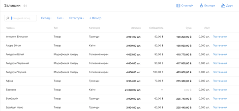 Це одна з найважливіших функцій для квіткового магазину, оскільки квіти мають обмежений термін придатності і потребують регулярного оновлення. З Poster ми відстежуємо кількість товару в режимі реального часу. В програмі навіть можна налаштувати автоматичні сповіщення, коли запаси квітів або флористичних матеріалів досягають мінімального рівня, що допоможе уникнути непередбачених дефіцитів.