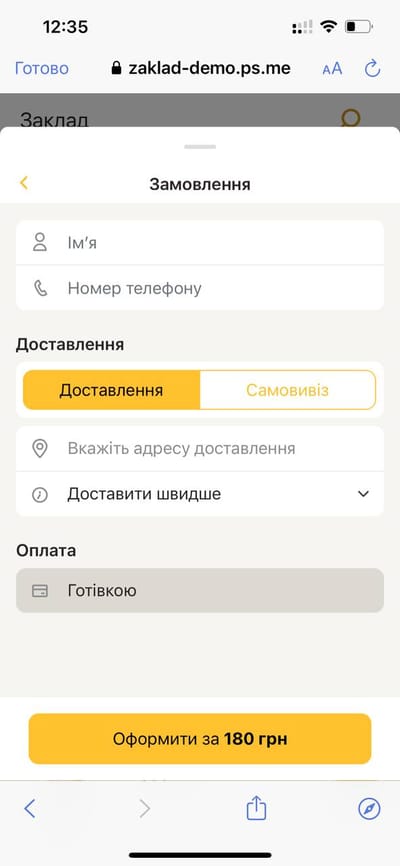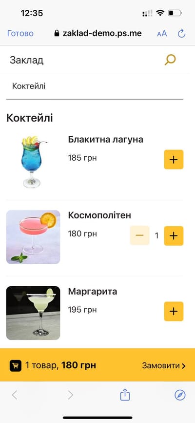 Якщо у вас ще немає власного сайту, створіть його в один клік. Таким сайтом зручно користуватися на комп’ютері й з мобільного телефону. Ваші гості зможуть подивитися меню і швидко замовити страви навинос або доставку.
