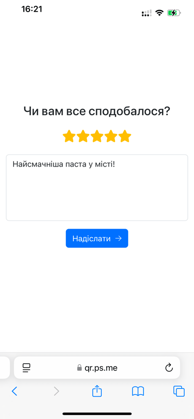 - Гість сканує QR та може залишити відгук про ваш заклад