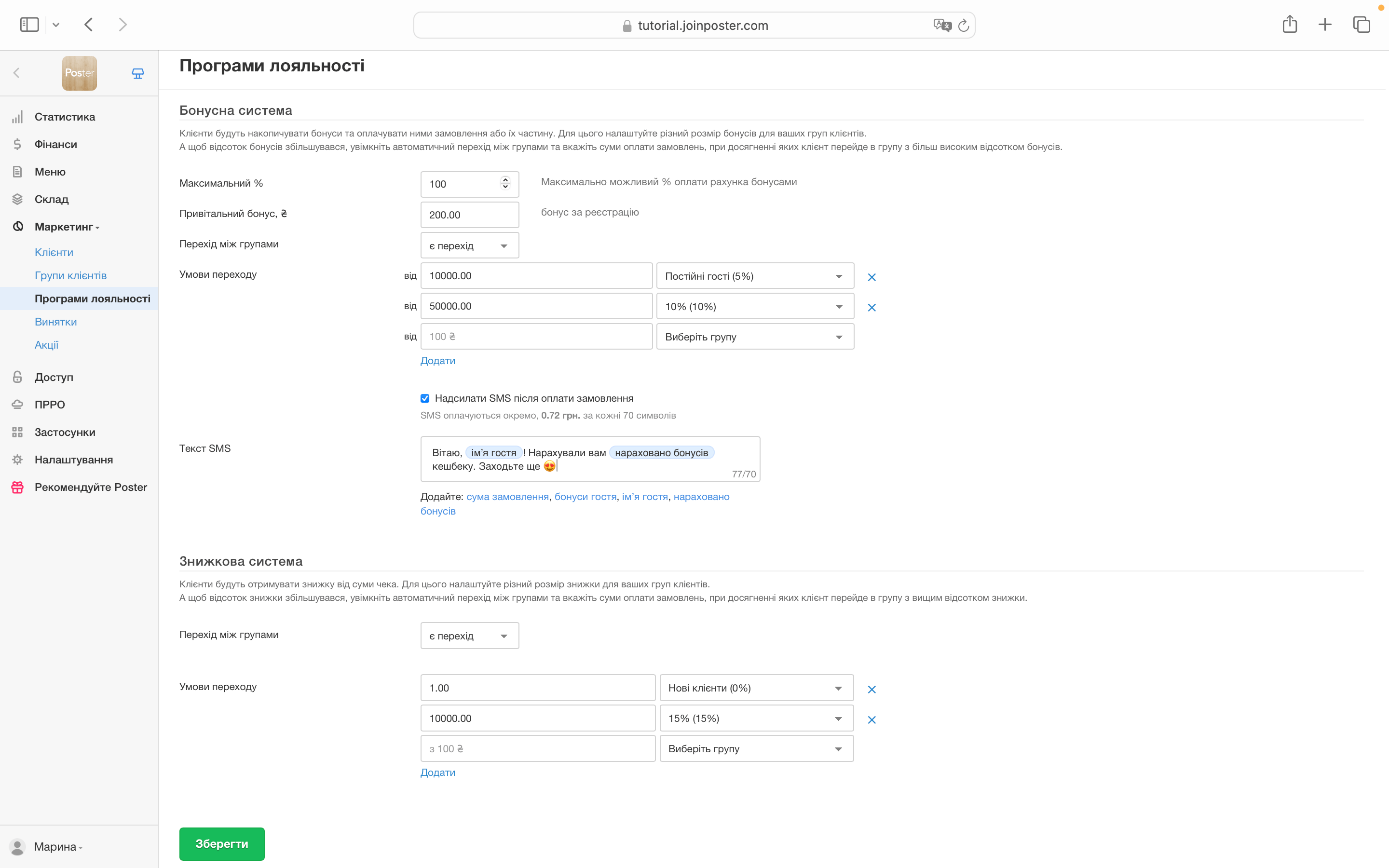 Налаштуйте бонусну чи знижкову систему