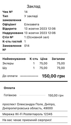 Додайте до чека логотип та адресу закладу, пароль від Wi-Fi, передбачення чи дійсно кумедний анекдот.